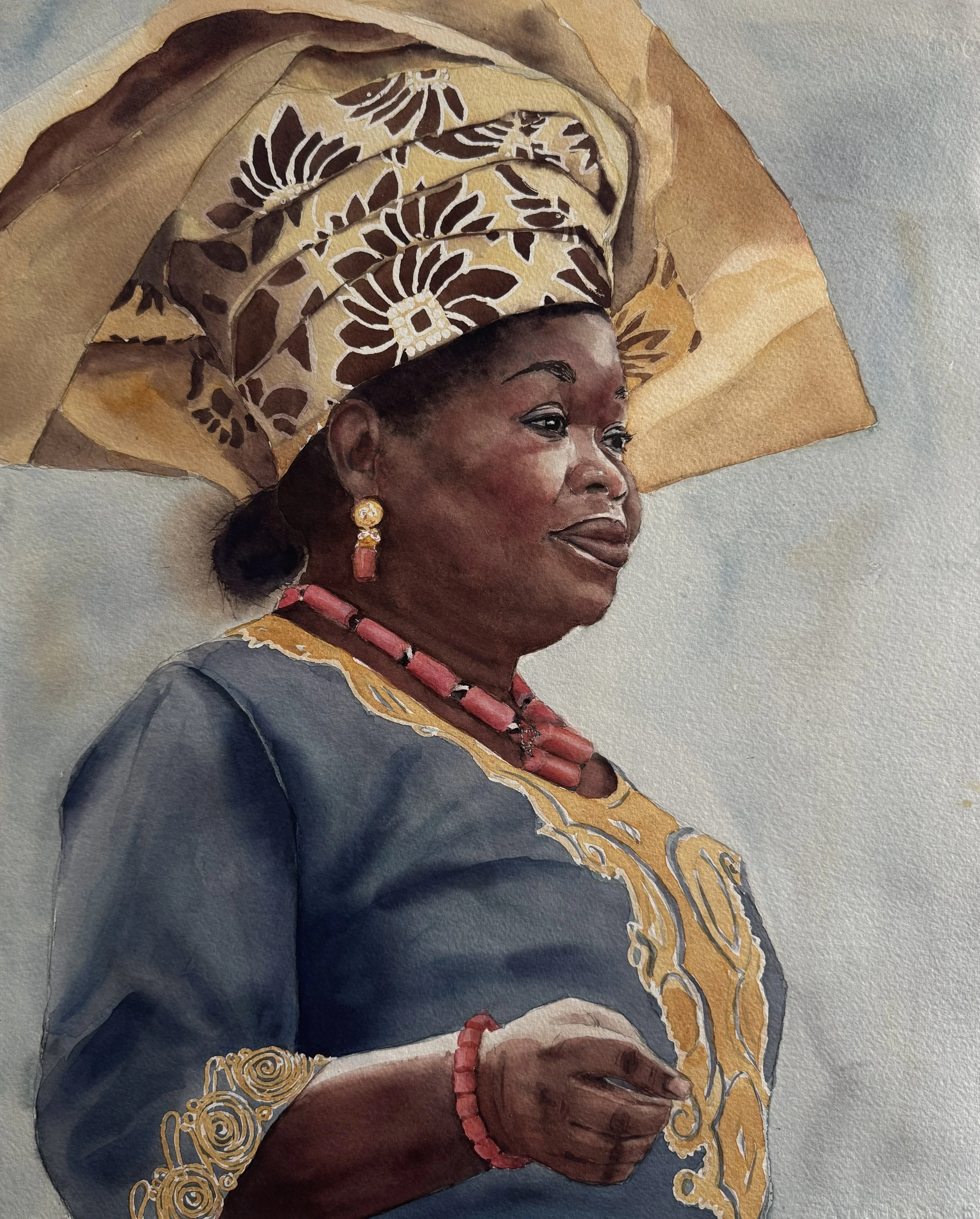 I am proud to announce that my painting “African Woman with Layered Headdress” has been accepted in the Watercolor Society of NC’s annual show. It’s an honor to be in this exhibit among some of the best watercolorists in NC. The show starts on September 28, 2025 at the Wilson Arts Center, 204 Nash Street S, Wilson NC. The show closes on November 2, 2025.